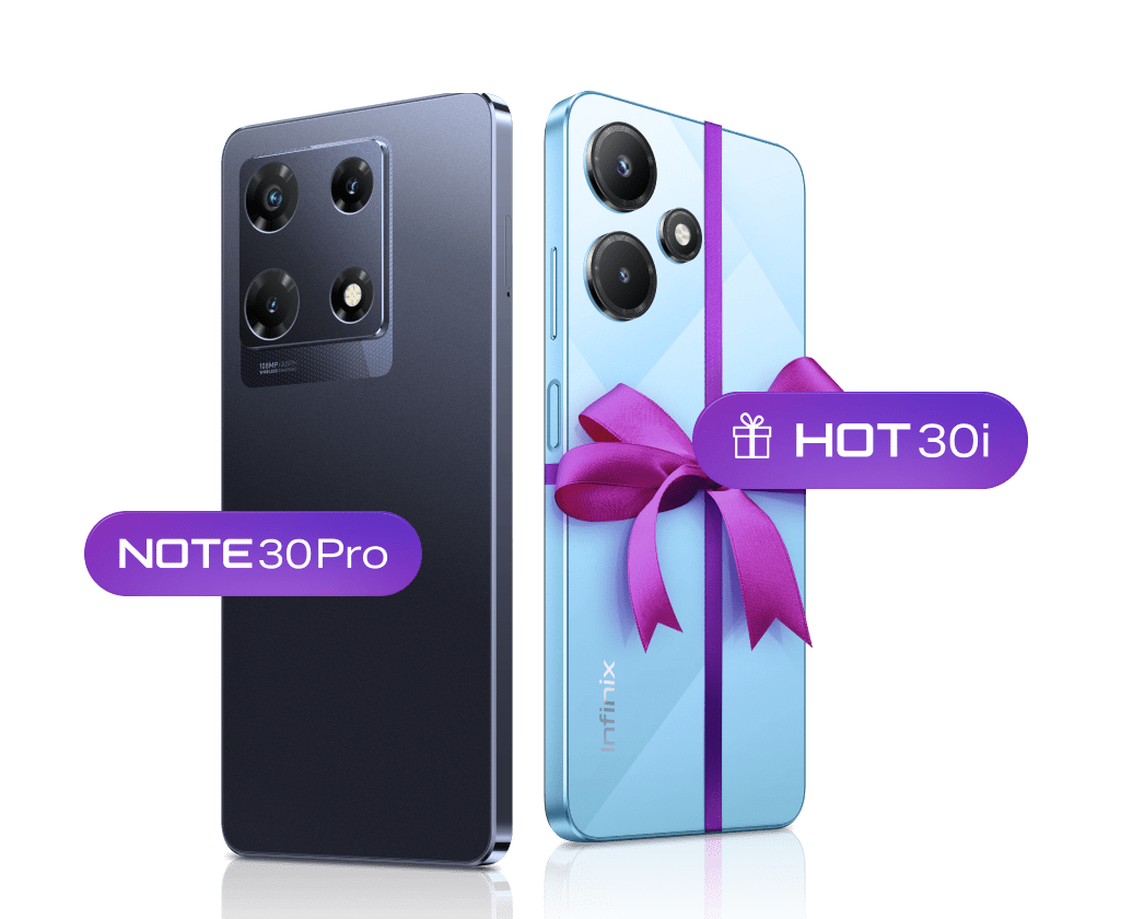 С 20 ноября по 31 декабря 2023 года вы можете получить в подарок смартфон Infinix Hot 30i (4/64 Gb) при покупке смартфона Infinix NOTE 30 Pro (8/256 Gb).